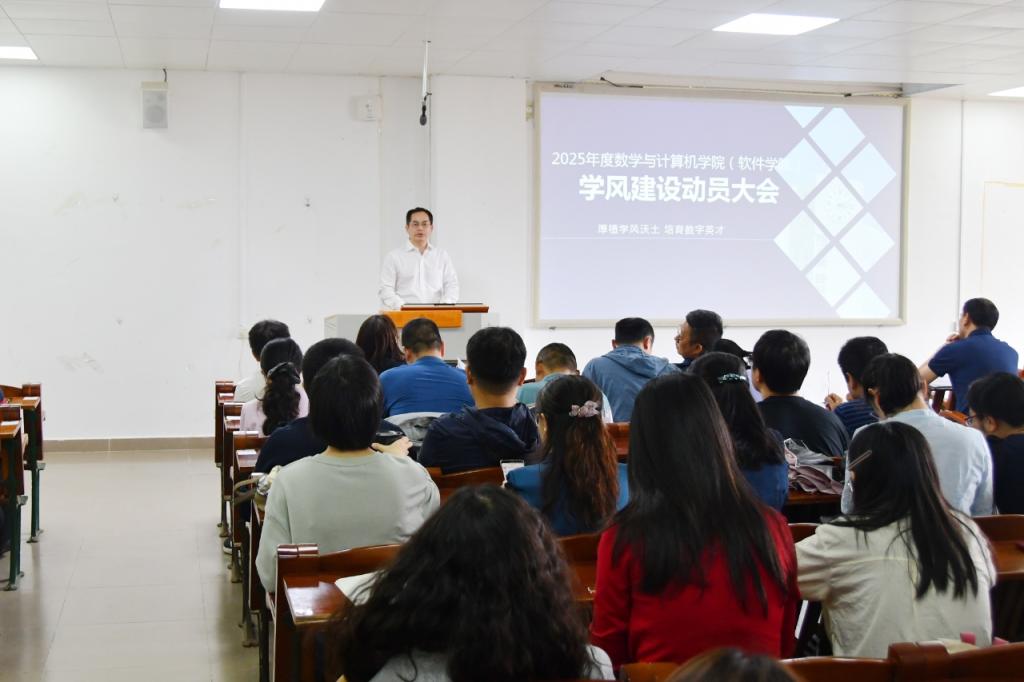 为深入贯彻落实学校学风建设三年行动方案,全面推进学院“三全育人”工作,4月9日下午,苏畅av 在明德楼A座103报告厅召开2025年度学风建设动员大会。学院领导、党委委员、纪委委员、各教学系正副主任、各党支部书记、全体辅导员、班主任以及学生骨干共140余人参加会议,大会由学院党委副书记农康主持。