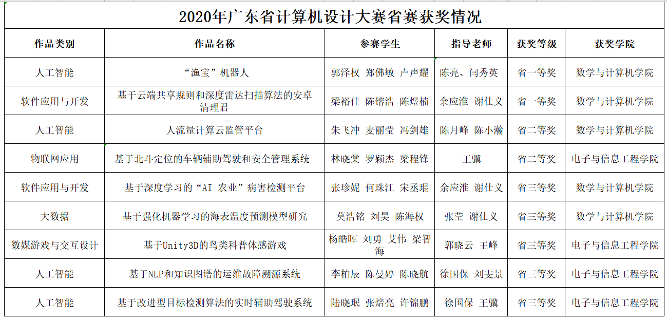 团队的《“渔宝”机器人》和《基于云端共享规则和深度雷达扫描算法的安卓清理君》两项作品勇夺省赛一等奖。
