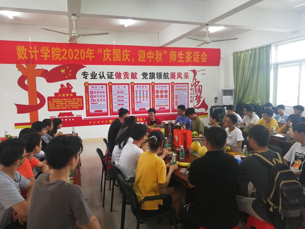 在第二教学楼A405会议室举办“庆国庆、迎中秋”师生茶话会,学院党委副书记周荣伟,值班辅导员、学院团委书记姚阳,部分在校班主任、留校新生和高年级学生干部及困难学生代表共50多人参加。