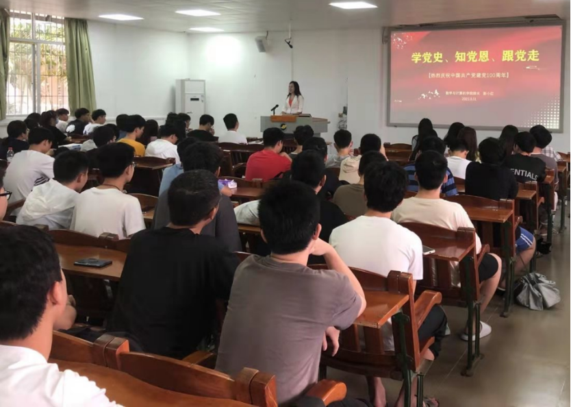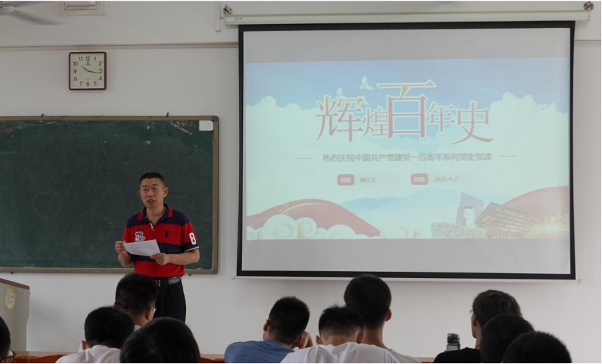4月2日上午,学院党委书记谢仕义在第二教学楼B1-401给学院计算机科学与技术专业2018级150多名学生上了一堂题为《辉煌百年史》的“思政第一课”。