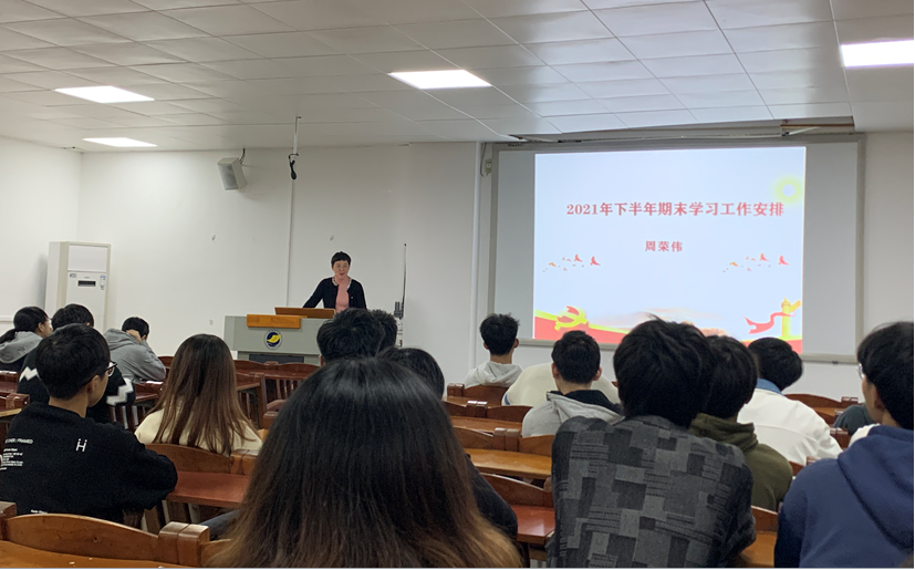 全日制本科学生学籍管理规定》( 【2017】78号)和《关于进一步加强教风学风考风建设和监考巡考工作的通知》,周荣伟副书记详细为学生干部解读了学校学籍管理规定中关于“考试”“缓考”“缺考”“考试作弊”和“学位认定”等规定,结合学生工作实际案例,要求与会学生干部认真研读学校规定,做好班级班风、学风管理工作,引导全班同学诚信应考。会上,周荣伟副书记还对近期疫情防控、校园安全防范等做了具体部署。