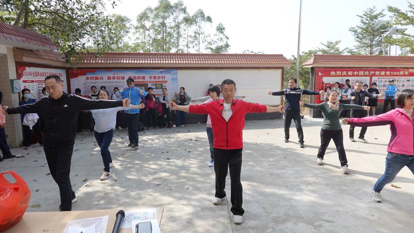 在平山岗村党群服务中心,学院还积极备战学校教职工广播体操比赛,以各工会小组为单位开展第九套广播体操比赛。比赛过程中,参赛队员个个精神抖擞,团结协作,充分彰显了我院教职工积极向上的精神风貌。本次预赛,为我院在学校教职工广播体操比赛取得好成绩打下了良好的基础。
