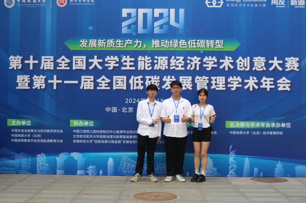 近日,由中国优选法统筹法与经济数学研究会、中国地质大学(北京)和中国高等教育学会资源能源教育分会联合主办的第十届全国大学生能源经济学术创意大赛全国总决赛在北京举行。本届大赛自启动以来,吸引了包括北京大学、清华大学、北京航空航天大学、中国人民大学、中央财经大学、香港理工大学等561所高校的优秀学子踊跃参与,报名团队17994支,参与人数近10万人。经过校赛、区域赛、全国赛三级赛制的激烈比拼后,我校学子喜获佳绩,荣获全国一等奖1项、全国二等奖1项,区域赛一等奖2项、区域赛三等奖2项。