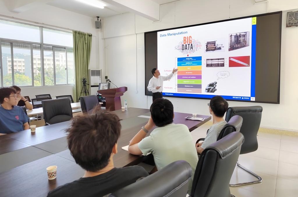 的邀请,美国阿肯州立大学姜海教授来我校做学术报告,题目为:高性能计算的过去、现在和未来。研究生院副院长叶国栋主持了学术报告会,约25名师生聆听了本次学术报告。在学术报告中,姜海教授指出,在大数据和人工智能时代,高性能计算特指计算机快速的运算能力,已成为解决实际问题的基础,是各国追逐的前沿领域。姜教授特别分享了目前高性能计算所面临的主要挑战,共同感知其未来的发展方向和趋势以及对计算机学科建设的影响。