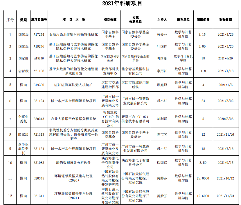 2021年科研项目