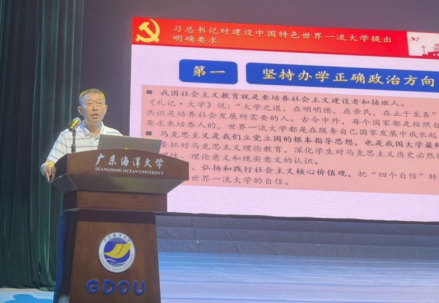 学院党委书记谢仕义带领大家学习习近平总书记在北京大学师生座谈会上的重要讲话,作题为“深入学习习近平总书记重要讲话精神,深刻领悟大学的本质和内涵”的报告。他围绕以人为本、崇尚学术、追求卓越和与时俱进的大学理念,分析了大学自治、学术自由、社会责任、道德追求等大学精神,阐释了大学在物质、精神、制度和环境等层面的多元文化和大学在人才培养、科学研究、社会服务和文明传承上的重要职能,他要求同学们要坚定正确的政治信仰,明确目标,求真务实,苦练本领,努力把自己培养成为堪当时代重任的合格大学生。