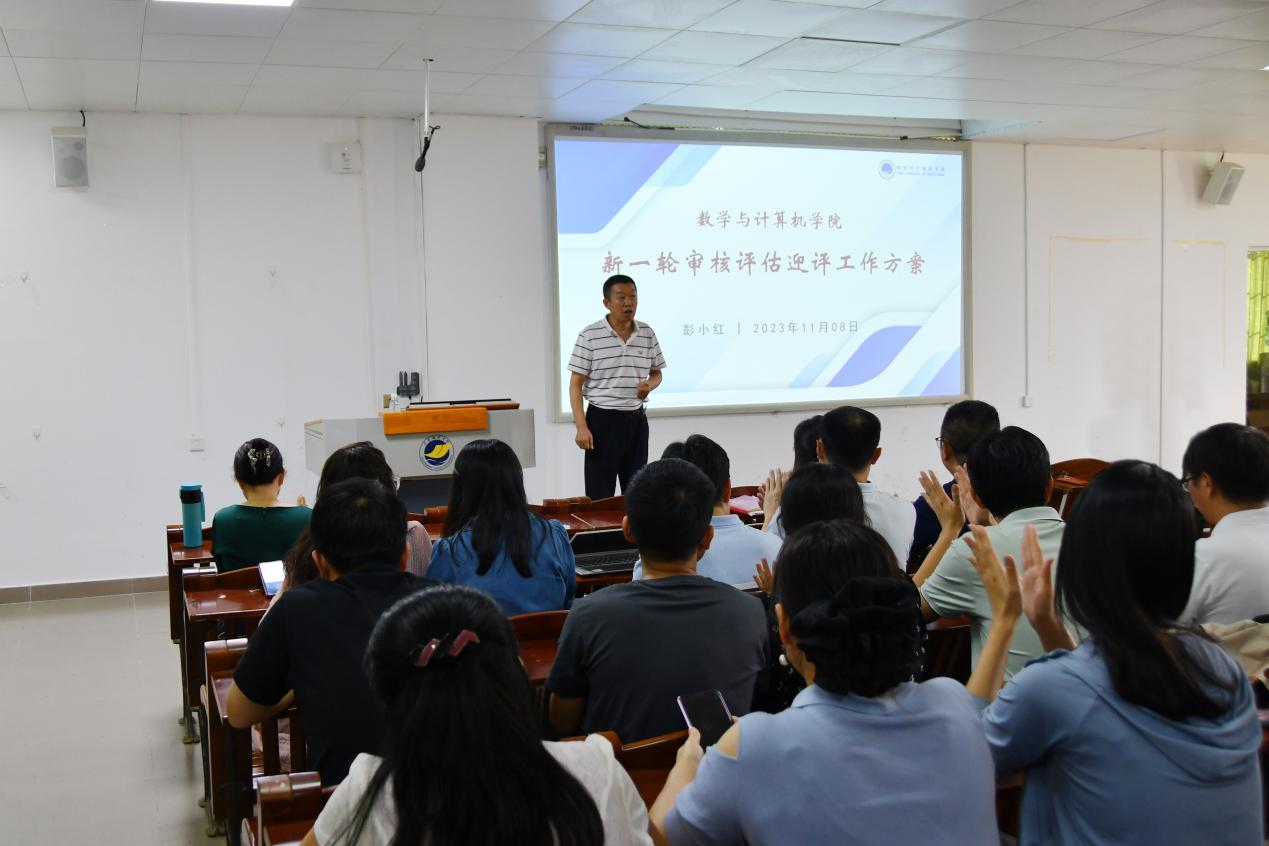 11月8日下午,学院在湖光校区明德楼A103会议室召开新一轮审核评估迎评动员大会,学院全体教职工参加会议。学院党委书记谢仕义主持会议,院长彭小红作动员讲话。