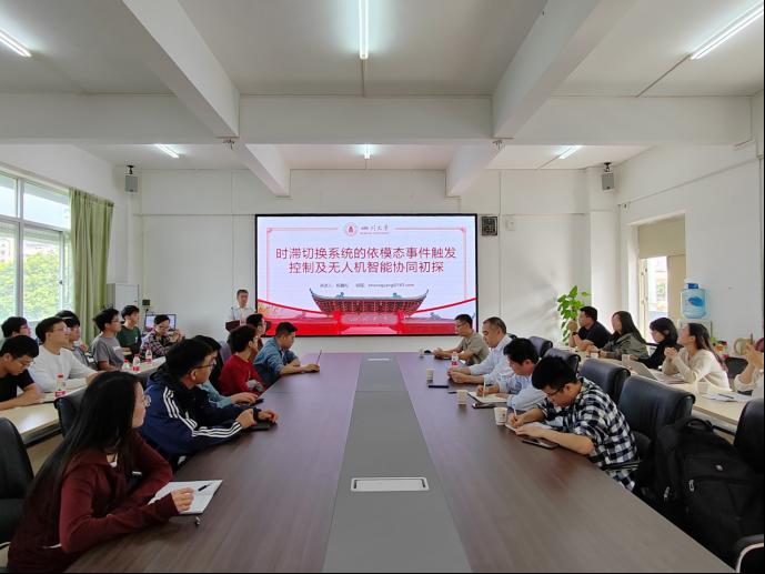 12月6日下午,应数学与计算机学院邀请,四川大学电子信息学院杨鑫松教授在湖光校区明德楼A座405会议室为学院师生作了题为“时滞切换系统的依模态事件触发控制及无人机智能协同初探”的学术报告。报告会由副院长陈入云教授主持,学院相关专业师生近50余人参加了此次报告会。