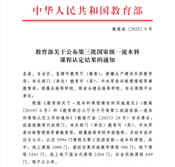近日,教育部正式公布了第三批国家级一流本科课程认定结果。由我院院长彭小红教授作为课程负责人的《计算机组成与结构》成功入选国家级线下一流课程。这是我院历史上首门获得国家级认定的本科课程,实现了学院在国家级一流课程建设方面“零的突破”,具有里程碑式的重要意义。