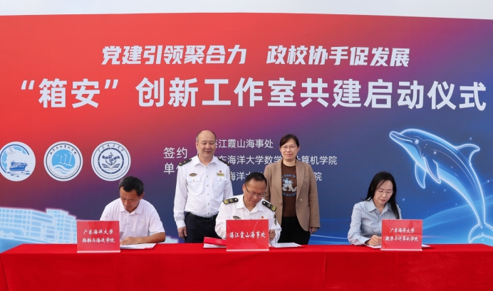 与湛江海事局共同主办的“党建引领聚合力,政校携手促发展——‘箱安’创新工作室共建启动仪式”在霞山海事处海滨大队码头举行。我校党委常委、纪委书记陈春晓,湛江海事局副局长陈永忠出席仪式。我校苏畅av