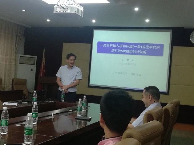 5月21日下午,美国乔治理工大学教授、博士生导师潘荣华教授,中山大学数学学院教授、博士生导师、广东省数学会理事长、中国数学会常务理事姚正安教授以及中山大学数学学院教授、博士生导师、逸仙学院副院长、广东省数学会秘书长王其如教授应我院邀请,在霞山校区第一会议室分别作了题为“Modeling and Analysis on Rayleigh-Taylor Instability”、“函数的连续性、可微性、自相似性与图像处理和计算机安全”、“Traveling wave solutions for a delayed diffusive SIR epidemic model with nonlinear incidence rate and external supplies”的学术报告。我院陈入云教授主持报告会,数学学科教师以及部分研究生聆听了报告。