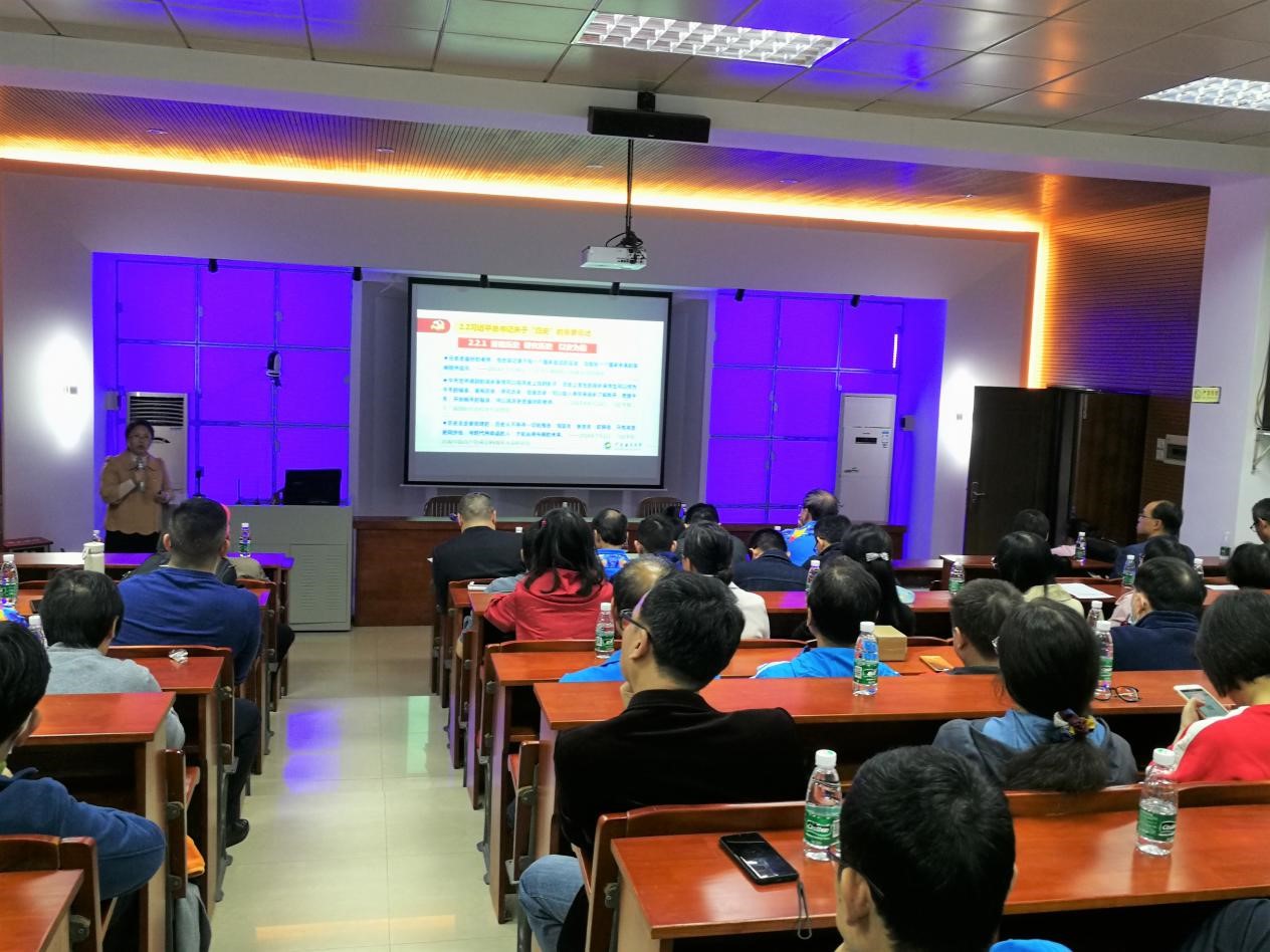 郭玉华首先结合学习习近平总书记关于党史、新中国史、改革开放史和社会主义发展史的重要论述,为我们解读了学习“四史”的重要意义、内容、方法和价值,强调了要坚持以马克思唯物历史观方法论指导“四史”学习,对于我们学好“四史”知识,正确认识历史、了解历史事实、理清历史脉络,把握历史规律、得出历史结论非常有启发意义。她的报告由浅入深、层层递进,深入分析了中国共产党为什么“好”、马克思主义为什么“行”、中国特色社会主义为什么“好”,为老师们进一步树牢“四个意识”、坚定“四个自信”、做到“两个维护”提供了理论和现实依据。