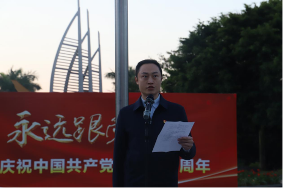 在中国共产党成立100周年之际,为深刻把握党史学习教育重大意义,做到学史明理、学史增信、学史崇德、学史力行,进一步加强爱国主义教育,弘扬爱国主义精神,激发广大师生的爱党爱国热情,按照学校工作安排,11月29日清晨,我院在湖光校区海洋广场举行庄重的升旗仪式。参加升旗仪式的有学校党委常委、副校长、党委宣传部部长刘东超,以及我院领导干部、师生代表共计300余人。仪式由学院党委书记谢仕义主持。