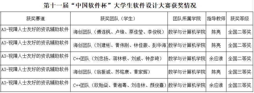 的5支晋级总决赛的参赛队伍在总决赛中与全国知名高校学生团队同台竞技,再次取得佳绩,共斩获全国二等奖3项,三等奖2项,获得的奖项总数及等级都是全省第一。