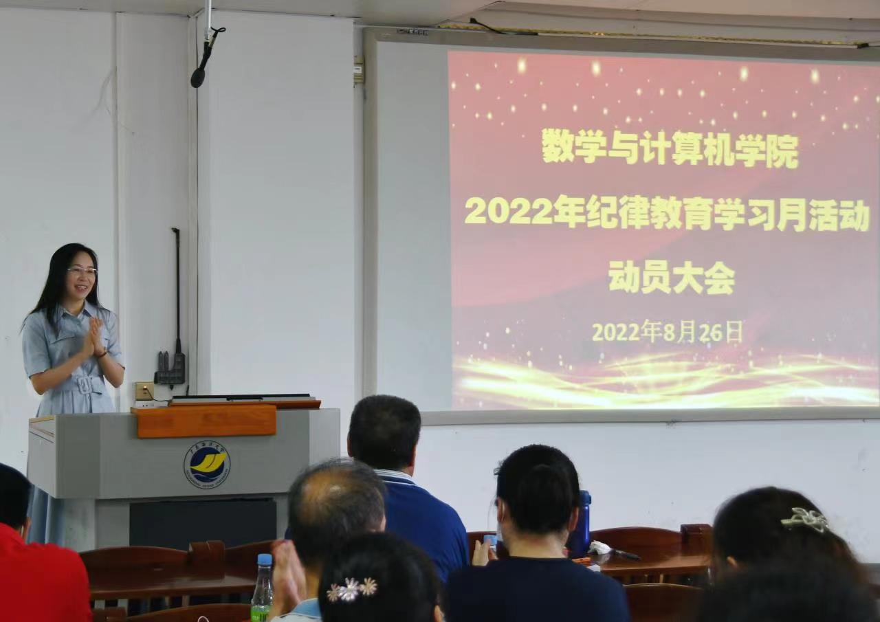 8月26日上午,学院2022年纪律教育学习月活动动员大会在湖光校区明德楼A103会议室召开,学院全体党员干部参加会议。学院党委书记谢仕义作动员讲话并作专题辅导报告,院长彭小红主持会议。