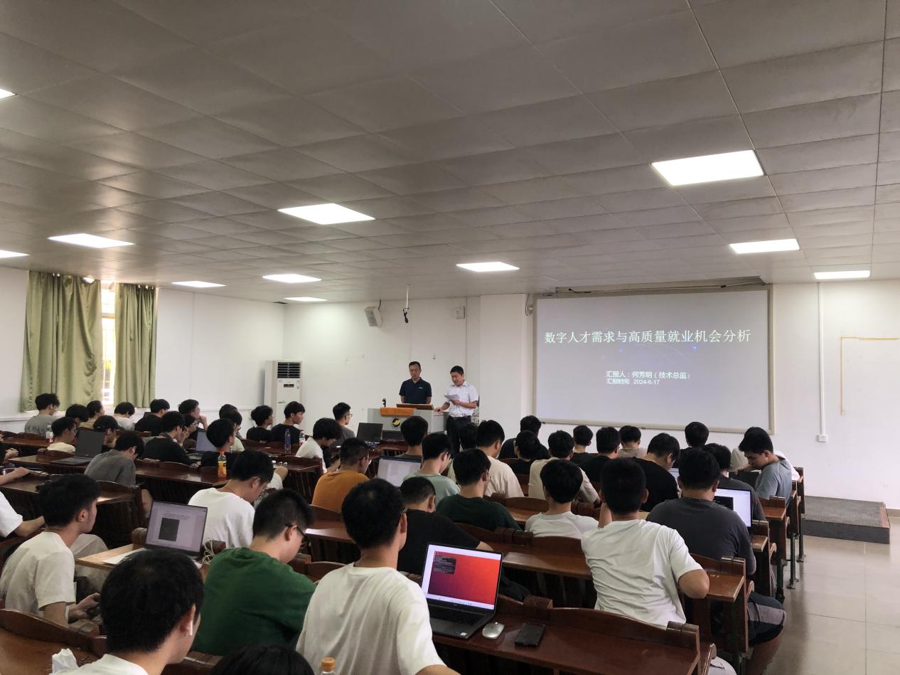为响应学校对学生积极就业引导的工作规划号召,结合专业人才培养方向的教学工作需求,物联网工程系邀请了广州狼码教育科技有限公司技术总监何芳明高级工程师,于617日上午10点在明德楼A1103会议室为物联网工程系的两个专业的在校毕业生举办了一场主题为“数字人才需求与高质量就业机会分析”的精彩讲座。此次讲座由物联网工程系的系主任徐国保老师主持。