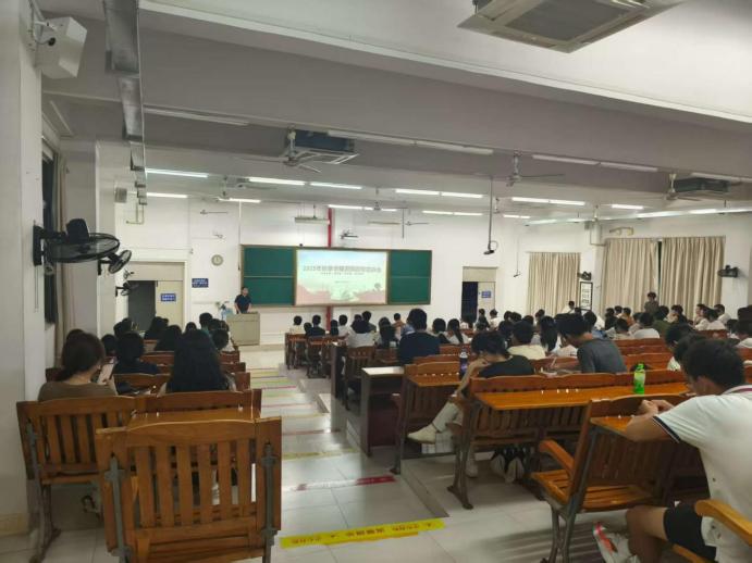 在二教B5401举行2025年秋季资助政策宣讲会。辅导员陈荣宁老师和资助专项学生干部冯轩安主讲,学院资助宣讲团成员以及200余名学生代表参加会议。