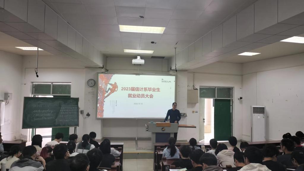 刘利老师对我院近几年的就业现状进行了详细分析,引导学生务必要积极主动抓住秋招的黄金招聘旺季,提高应聘成功率。最后,数据科学系邝雪松主任、信计系李升主任和副主任王红青也分别作了发言,鼓励同学们继续努力,坚持不懈,合理安排好毕业论文、就业、毕业实习和考研考公等环节,做好充分准备,确保顺利毕业,成功就业。